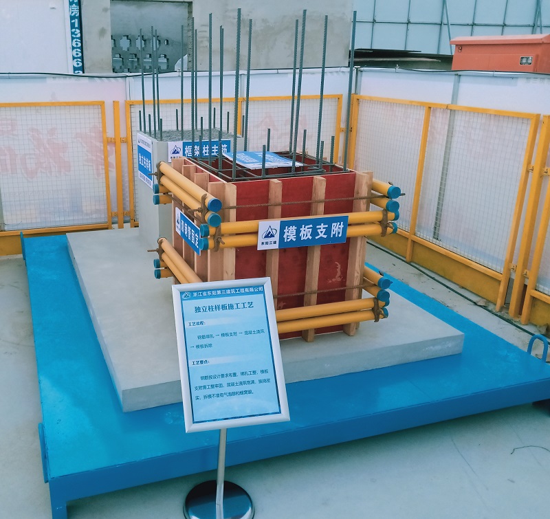 鋼筋設置、鋼筋綁扎、框架柱砼、柱支模等工藝;柱鋼筋綁扎、定位鋼筋留設、模板支附、混凝土澆筑等。