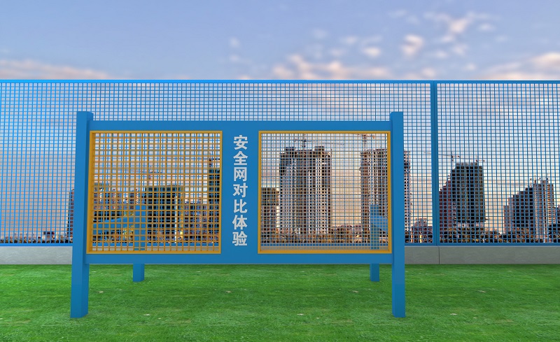 1、通過合格與不合格密目式安全網(wǎng)的對比展示,讓體驗(yàn)人員從視覺、觸覺上更直觀的了解對安全網(wǎng)的材質(zhì)、目數(shù)等的要求,懂得安全網(wǎng)在高空作業(yè)時(shí)防止人或物墜落而起到的關(guān)鍵作用。
